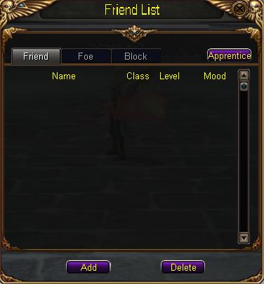 - Open Foe list, click "Add" on the friend list interface, and then input the player's name into the designated box.