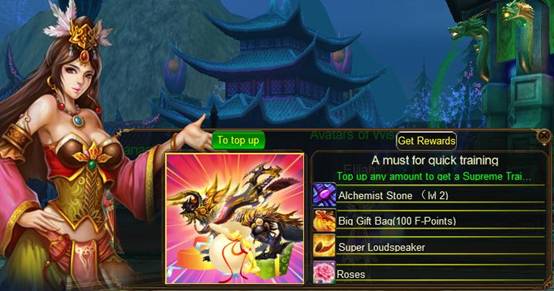 This is one of the benefits for players. Any player will be rewarded a big gift pack “CR Gift” if he credits any amount of A-Points for the first time!