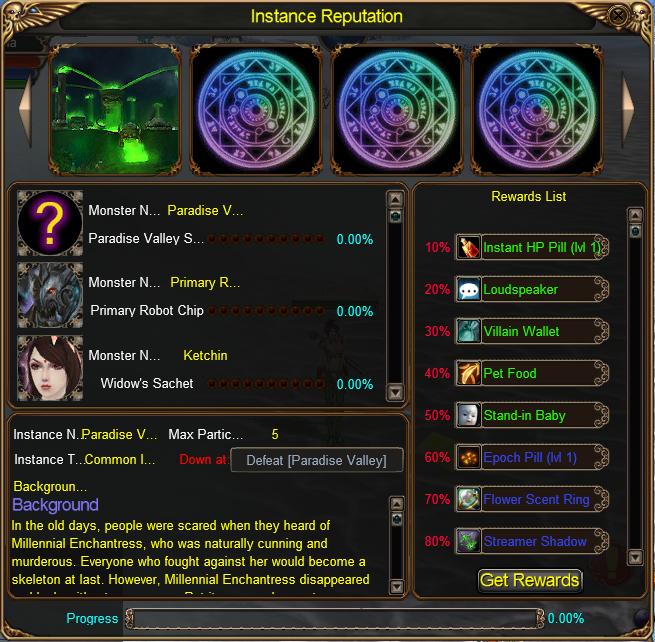Each Instance has one complete degree, while all the wild BOSS share one complete degree. Complete Degree can be promoted by collecting reputation drops from common instance monsters and BOSS.