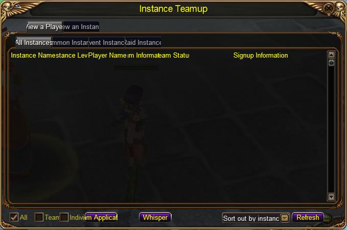 Instance which has a higher level than your character won’t be shown. Instance which has a 10 level lower than your character will be shown in gray color. The pull-down menu allows you to rank instances by levels or by names.