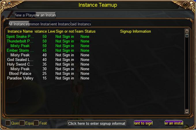 - “Click here to enter signup information”: input your info to display it on “Signup Information” in both “View a Player” and “View an Instance” interfaces.